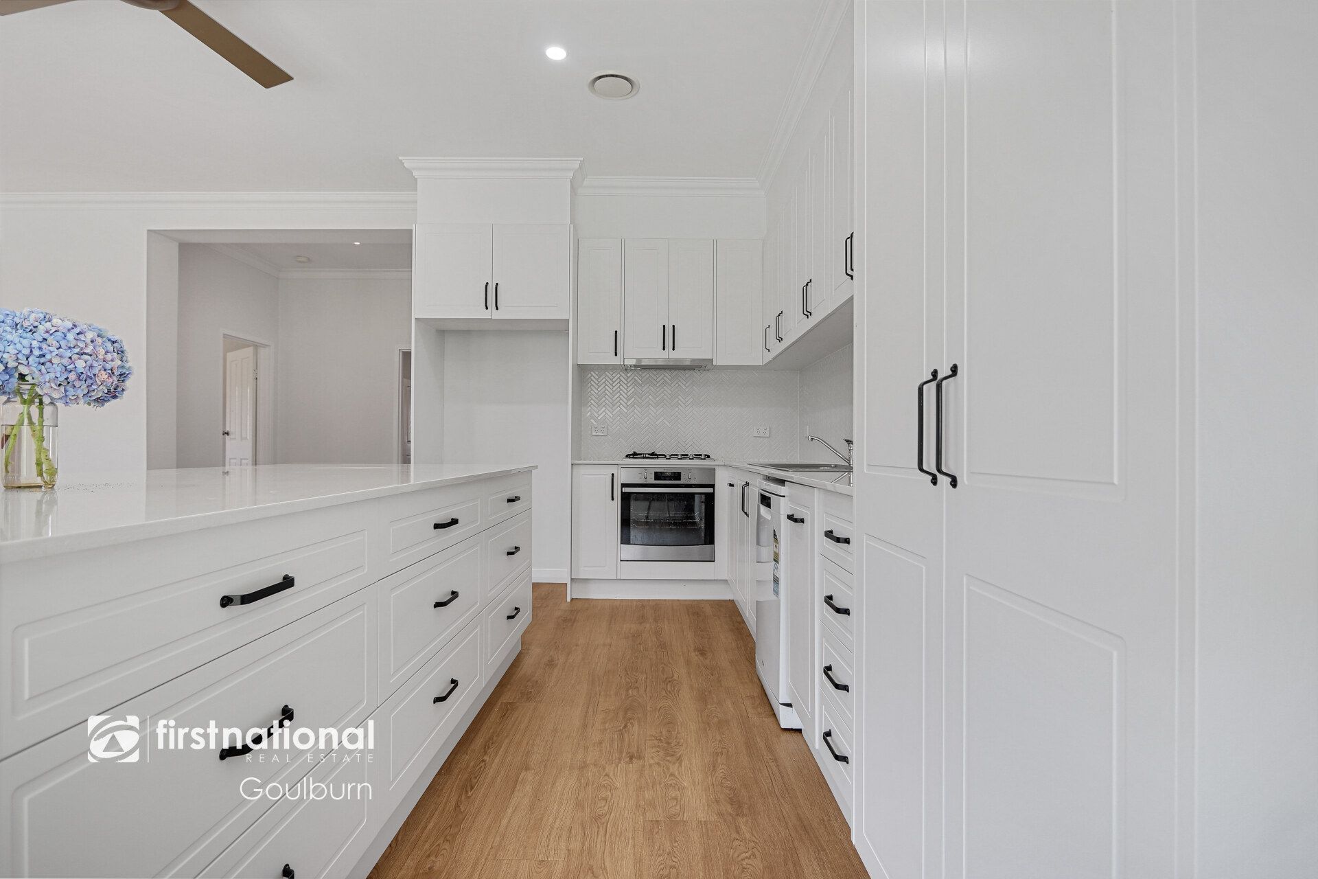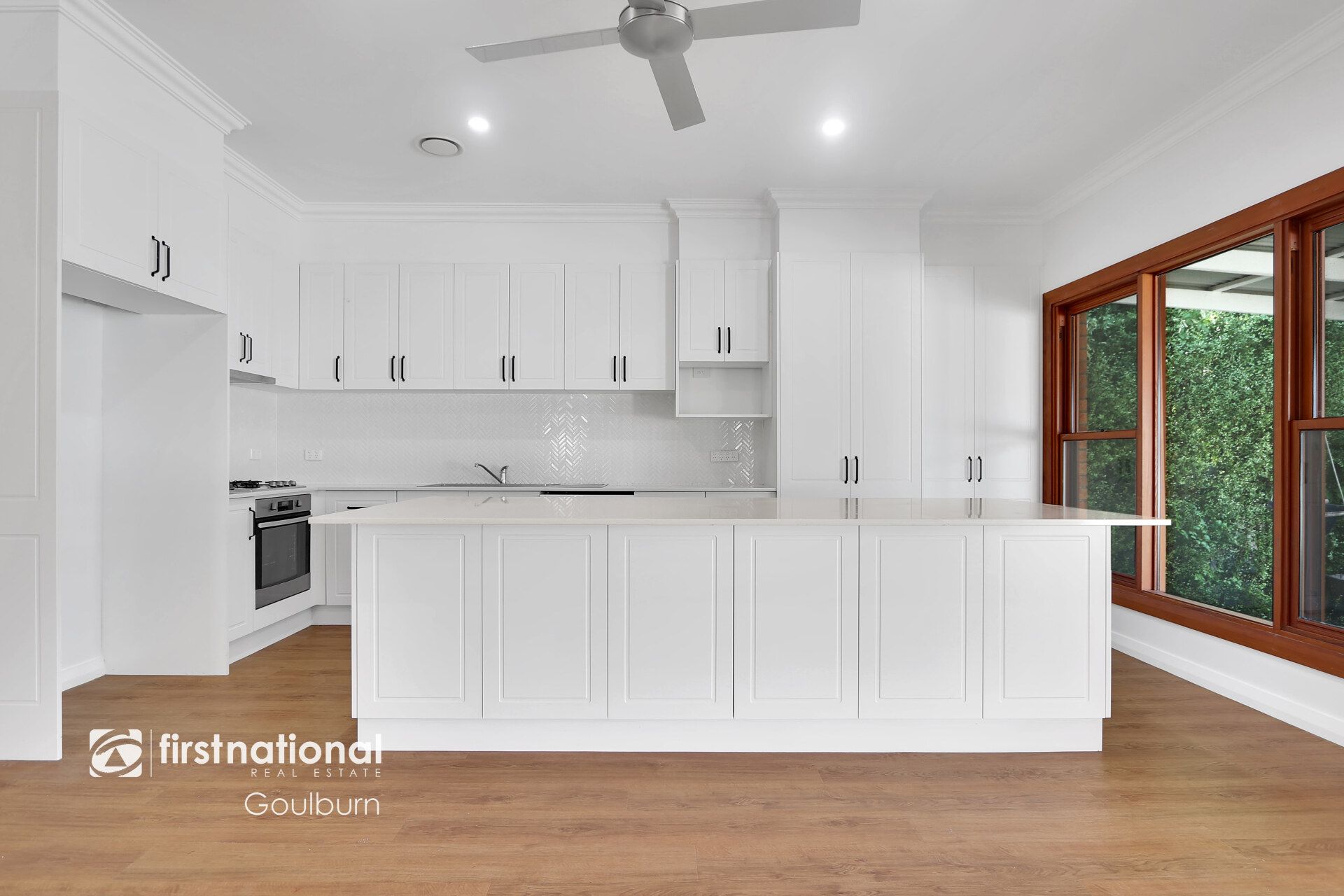 * Stunning new kitchen with huge stone island bench and stylish black accents flows seamlessly out to the rear alfresco