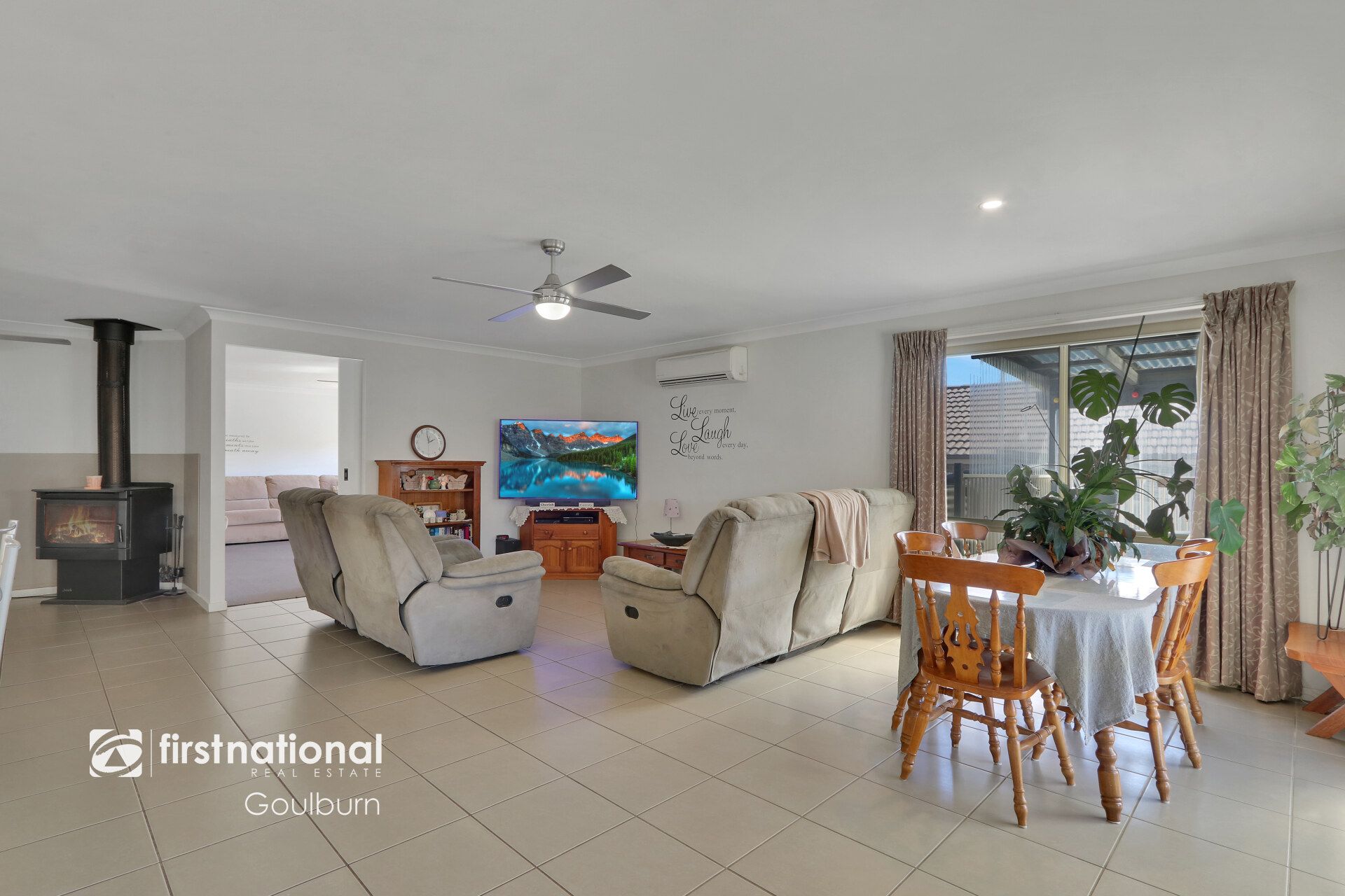 * There are two expansive living zones including a separate loungeroom as well as an open-plan living, dining, and kitchen area with wood fire and air conditioning for year-round comfort.