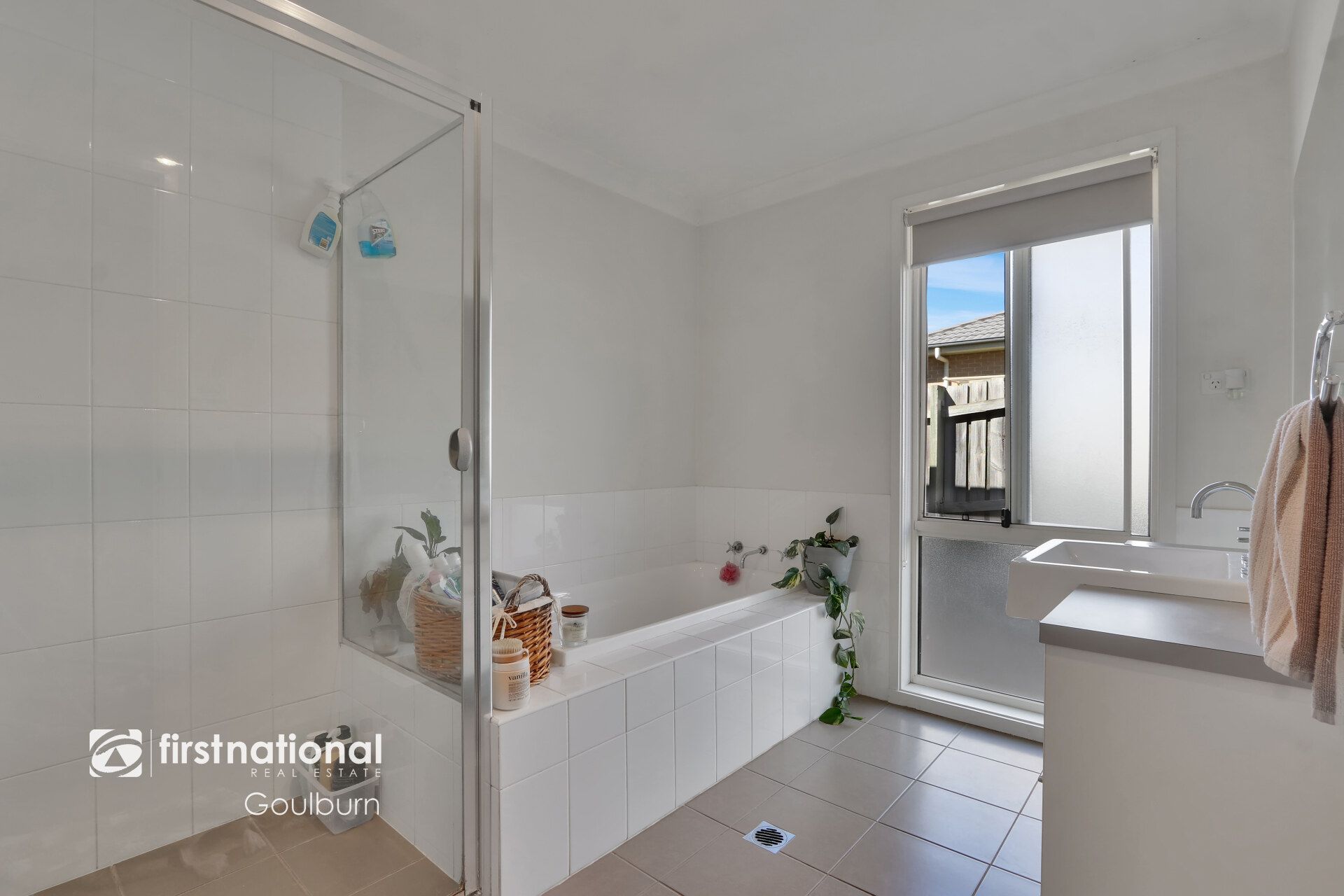 * Fresh, modern main bathroom with separate powder room for family functionality.