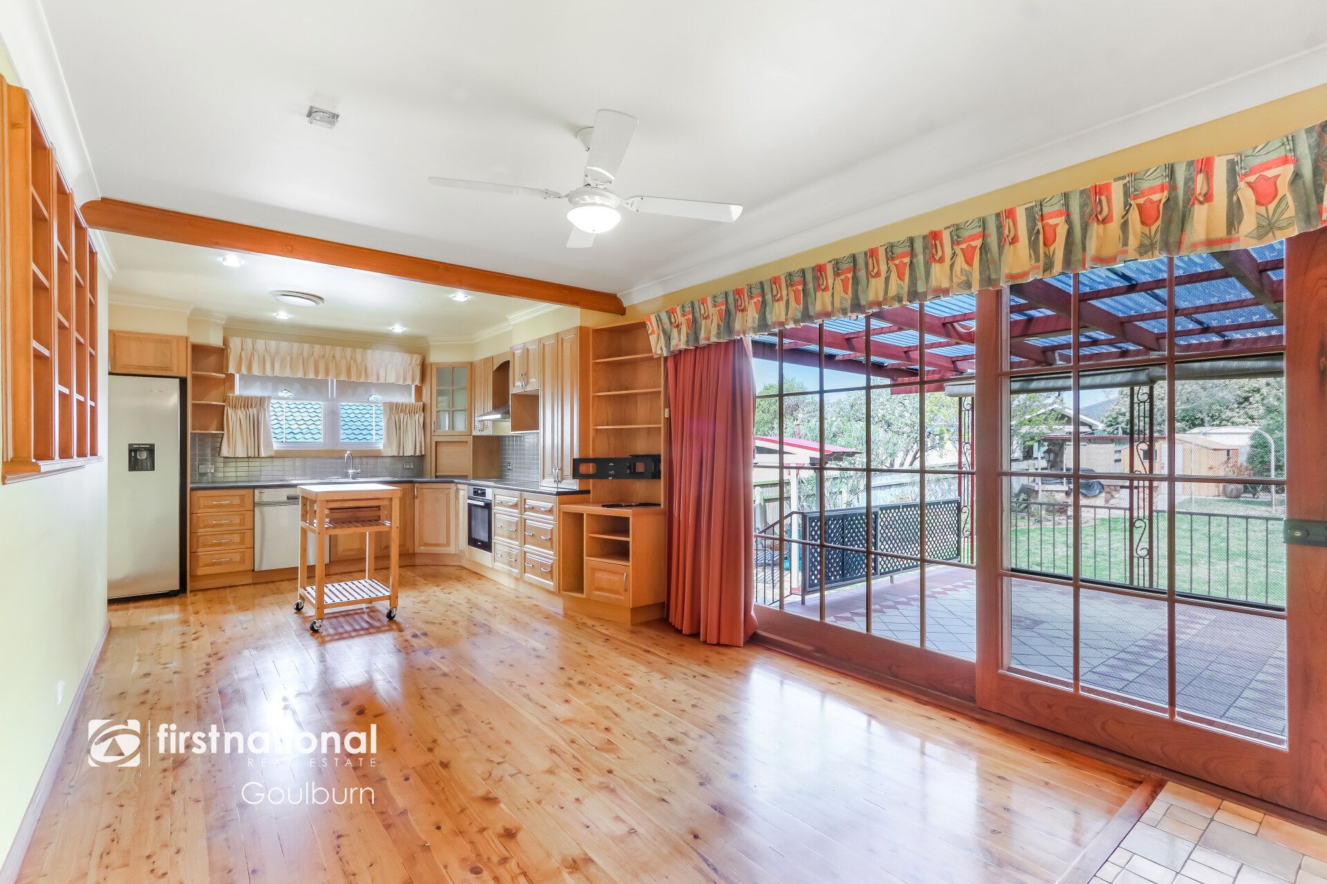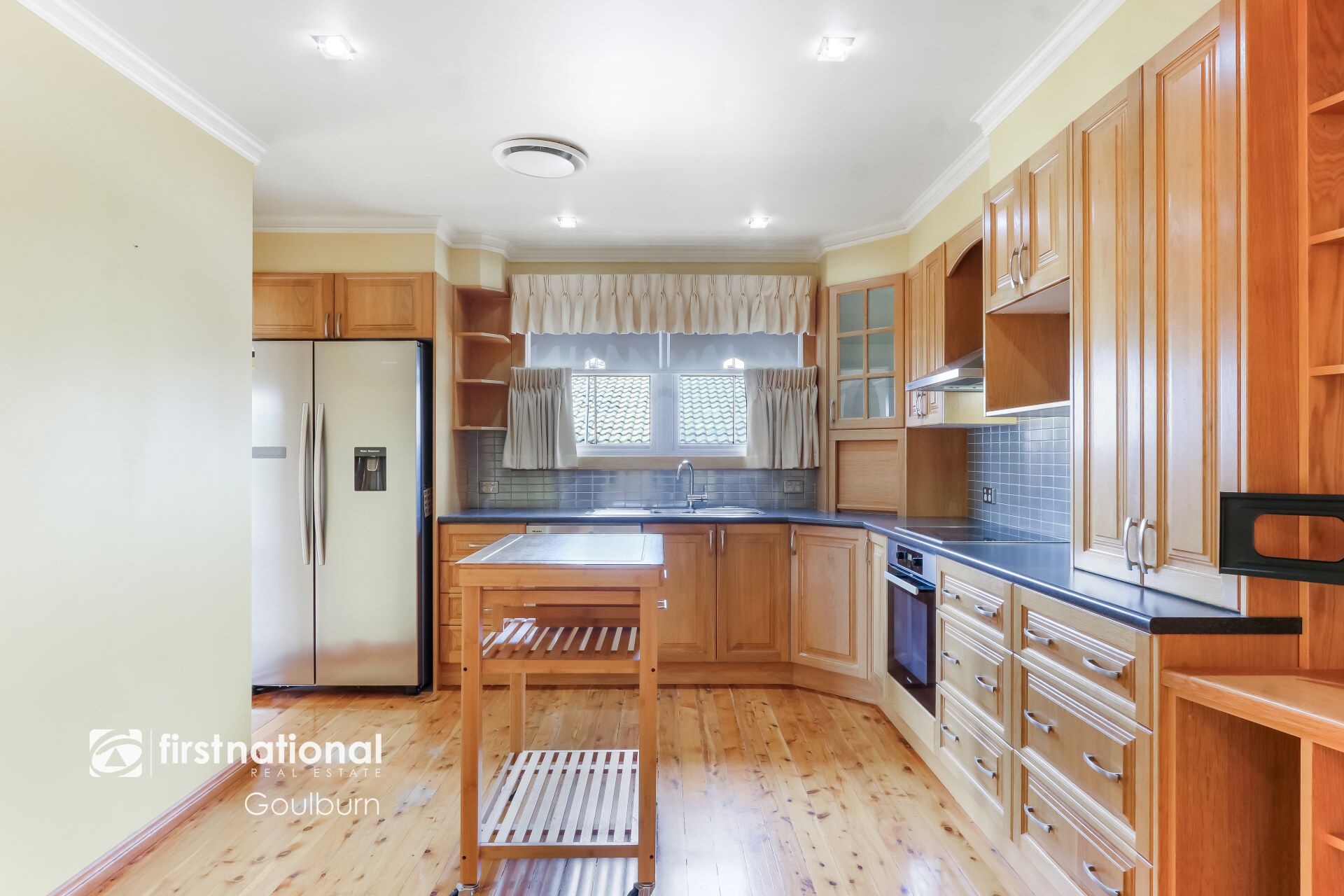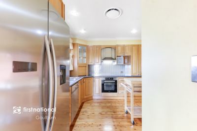 * A warm and inviting open-plan kitchen and family room showcases classic timber cabinetry, quality European stainless steel appliances and plenty of storage.