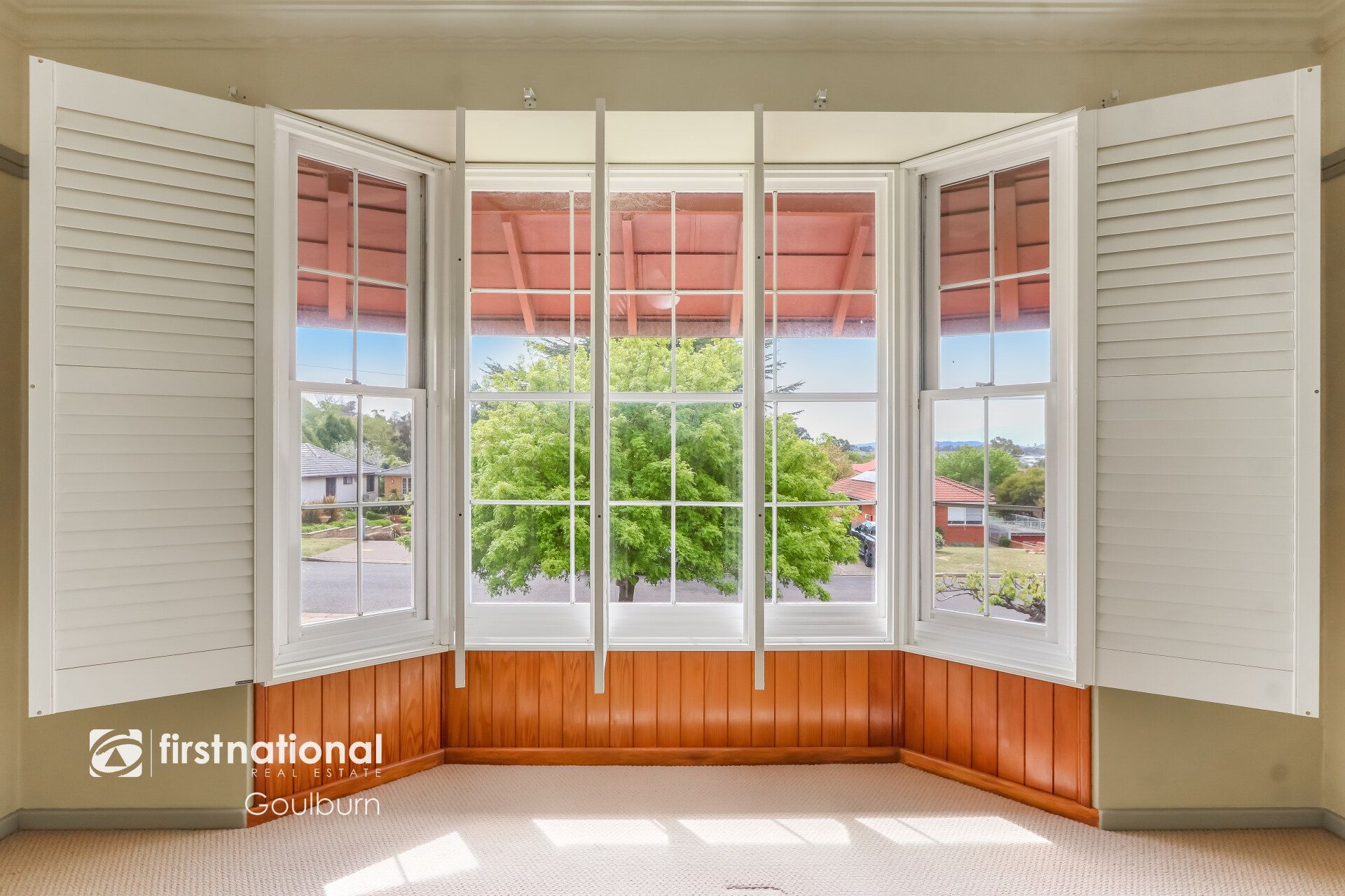 * Three well-sized bedrooms on the main level, one of which is the main bedroom featuring plantation shutters and a charming bay window.
