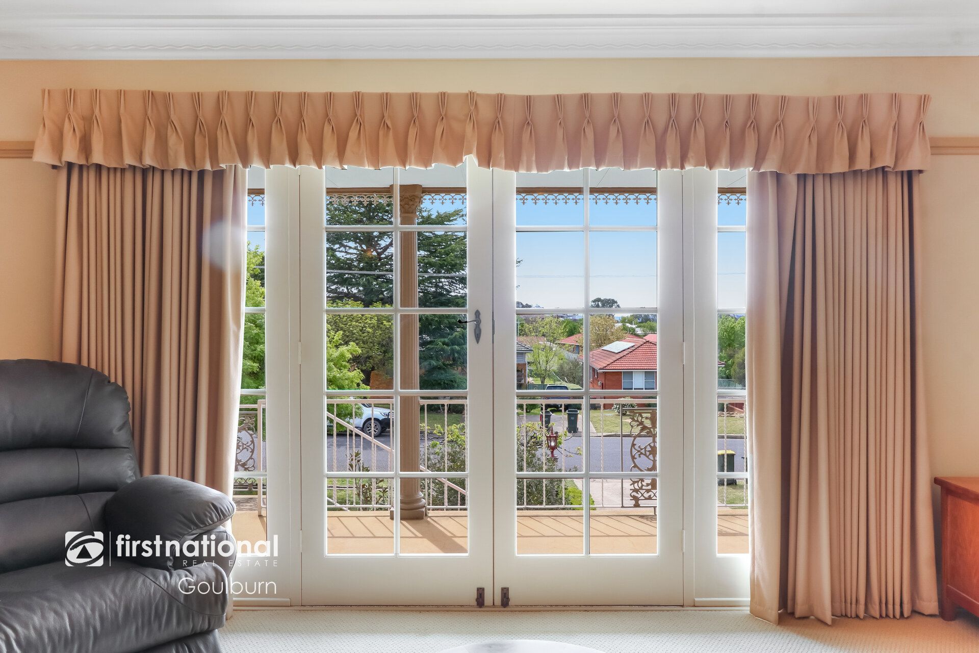 * The spacious living and formal dining areas feature French doors opening to a sunny front balcony, capturing beautiful northern views.