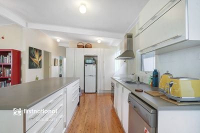 * The updated kitchen complements the open plan kitchen, living and dining area, while the timber flooring throughout adds warmth and character.