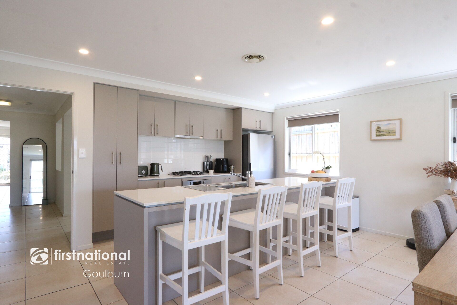 * Galley kitchen with gas cooking, dishwasher and large breakfast bar